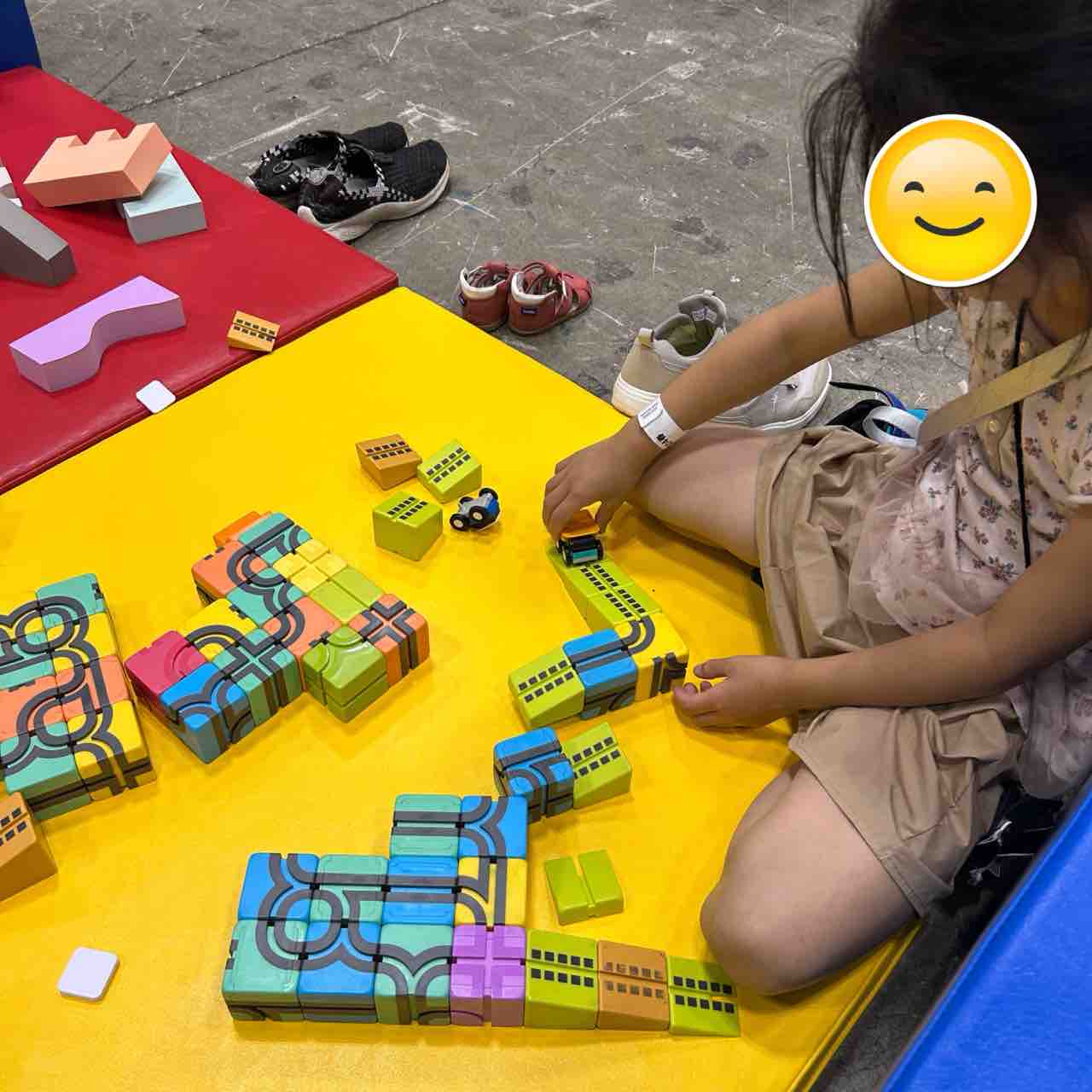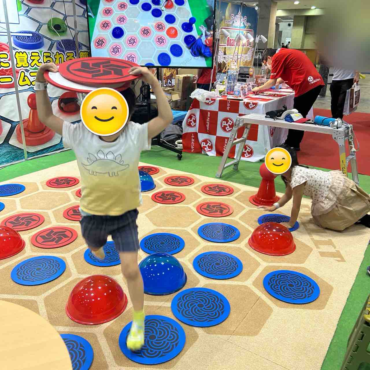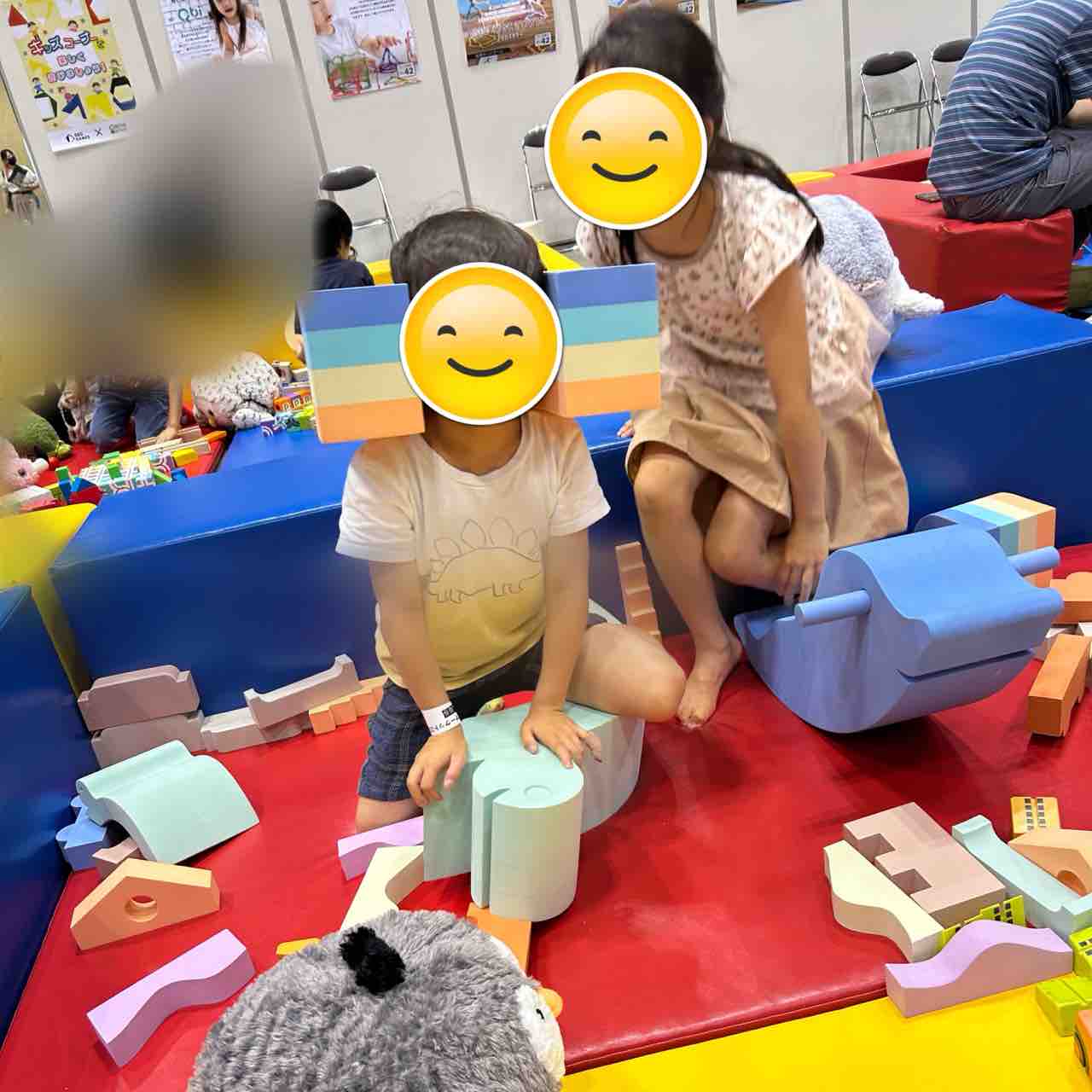 実際には、キッズコーナーに戻りたがるので、何度もブースとキッズコーナーを行ったり来たりしました。