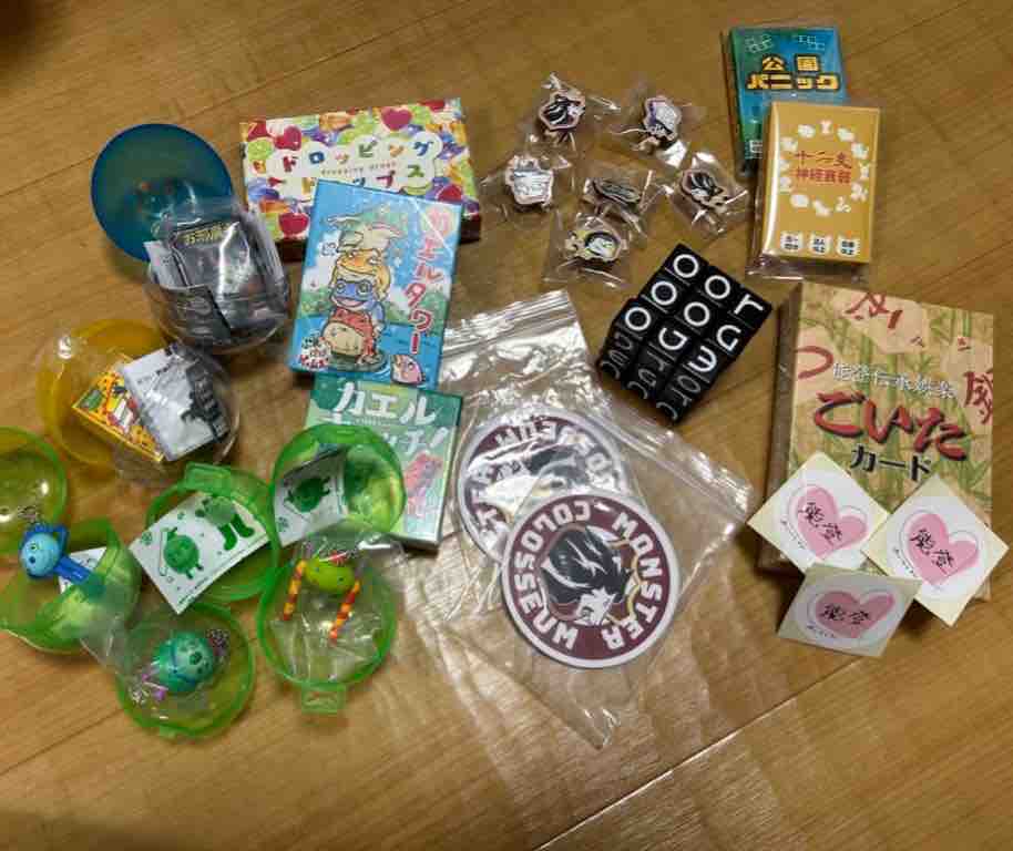 まずは、すごろくやのガチャ!!このために、いっぱい100円玉を持ってきていたので、お財布が重い。
