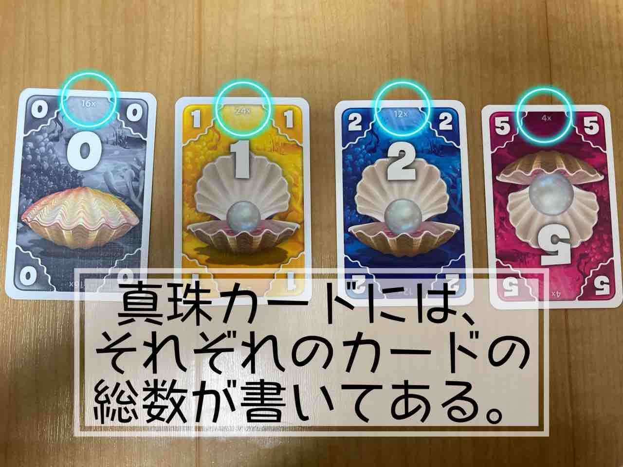 プレイヤーの人数によっては、以下の真珠カードを取り除いて箱に戻します。