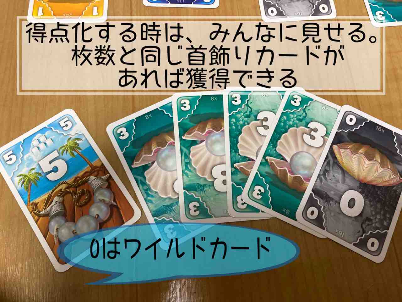 重要: 置く真珠カードの枚数と首飾りカードの価値は、ぴったり同じでなければなりません。