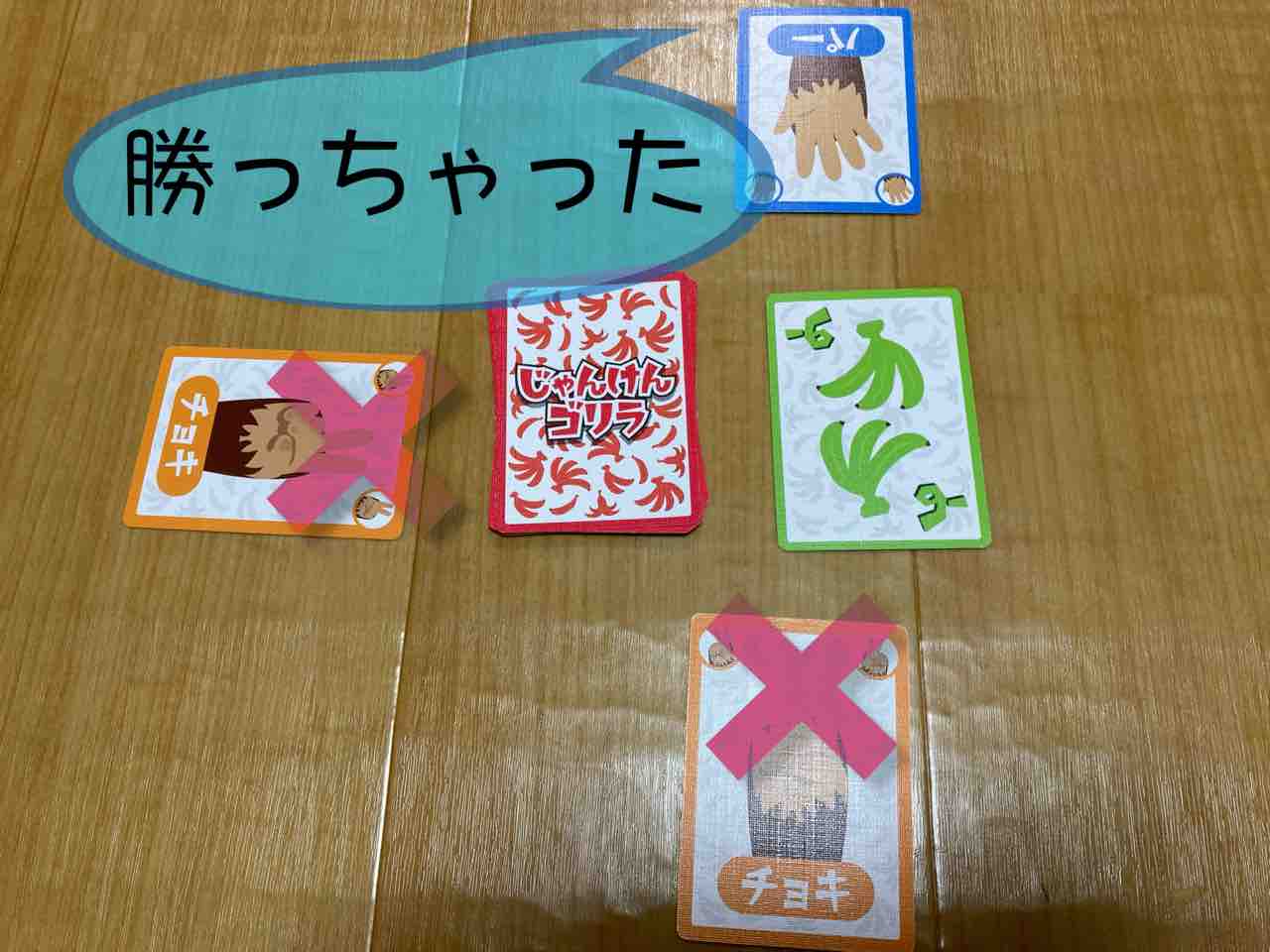カードを全員がふせたら一斉に「じゃんけんゴリラ!」のかけ声でカードを表にする。