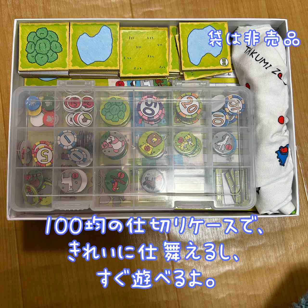 動物チップをメインボードの決められた場所に置きます。(使用するチップの数は遊ぶ人数で異なります)メインボードにボーナスチップを置きます。