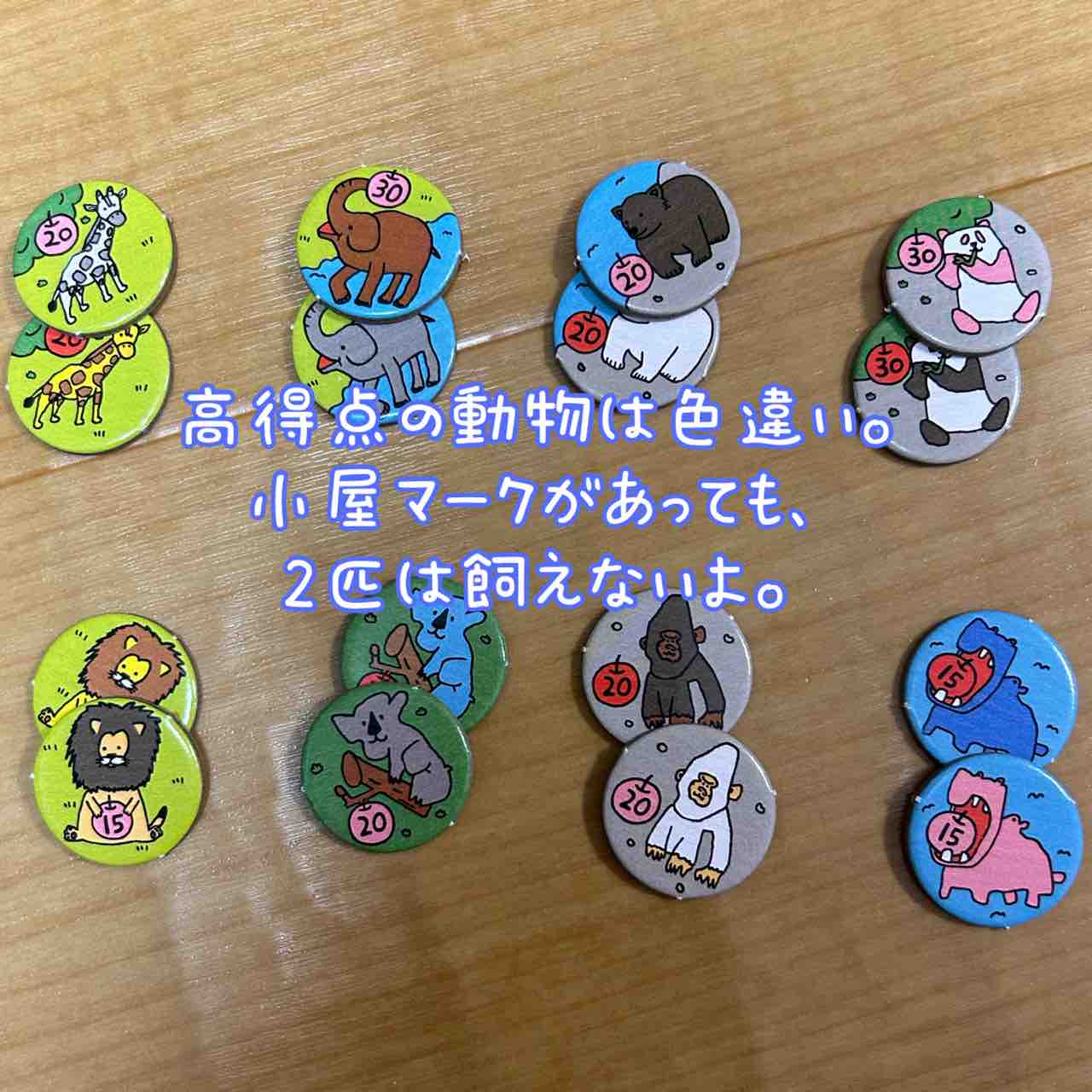 もちろん、ポイント計算も動物を戻す都度、スコアマーカーを戻し、飼い足せばマーカーも増やしていれば、そんなに大変な計算ではありません。