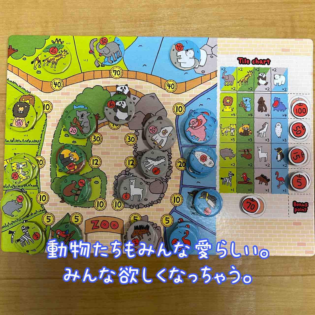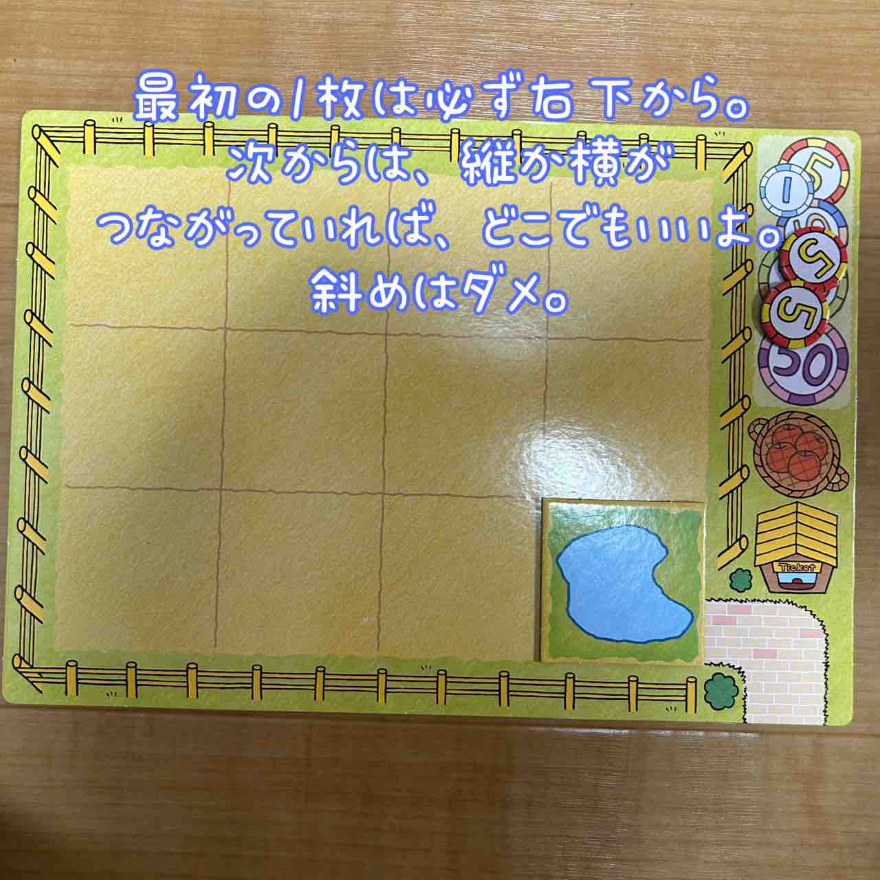 基本的には、タイルを置いていき、そのタイルの組み合わせにあった動物を飼っていくので、ルールは簡単。