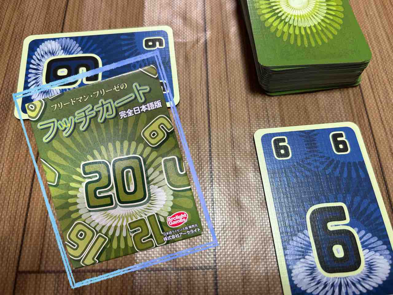 実は、子供たちがもっと小さい頃に購入していたゲームなのですが、説明書を読んでも、いまいち捨て札にするタイミングがわからず、遊ばずでした。さらに、いろんなレビューで高評価にもかかわらず、大人数で遊ぶほうが楽しい!となっているし、BGGでもベストが6~8人となっているので、我が家向きではないな~と余計に触れずに積んでいました。