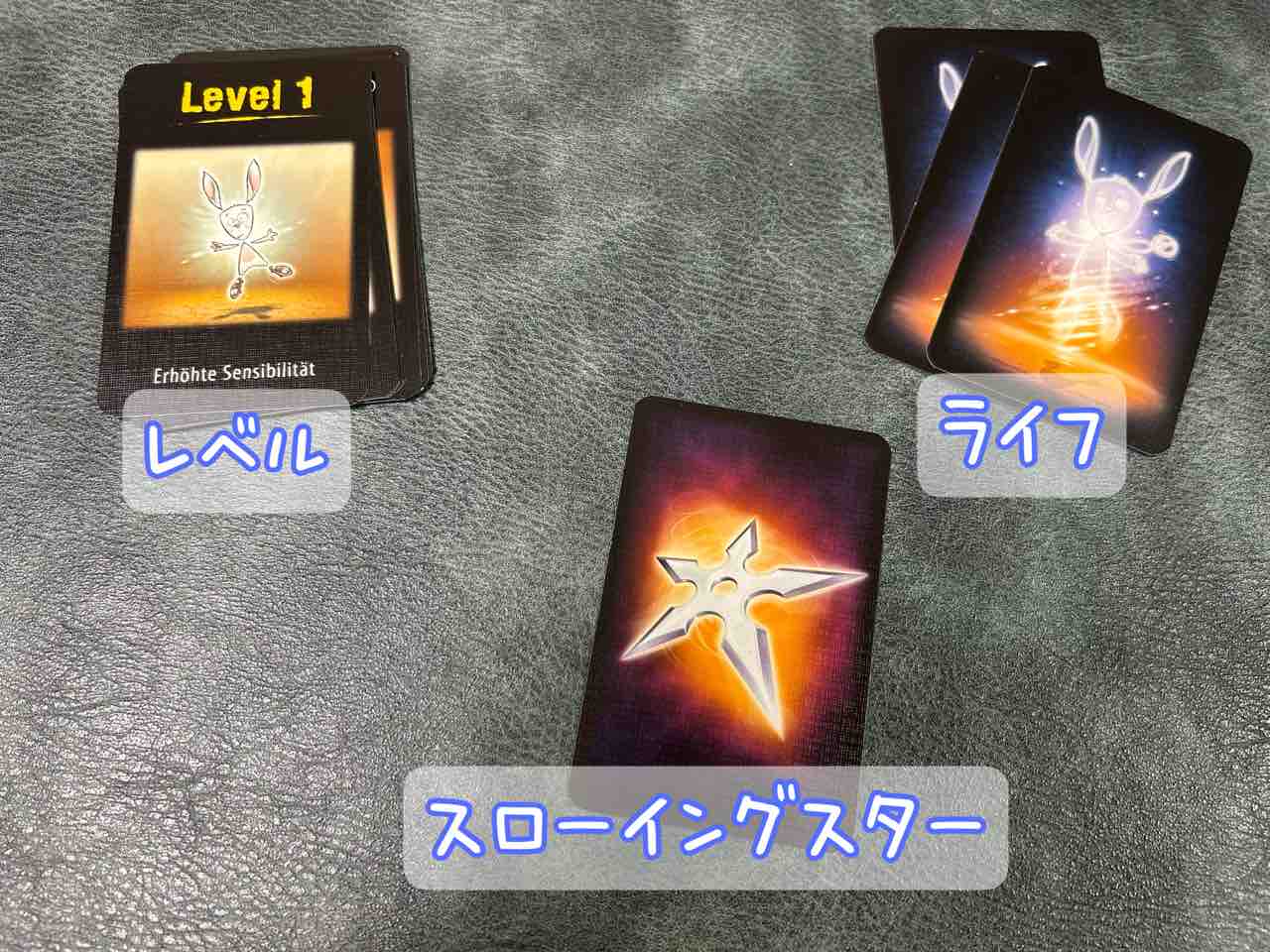 レベルカードを1が一番上になるように昇順に重ねて置きます。