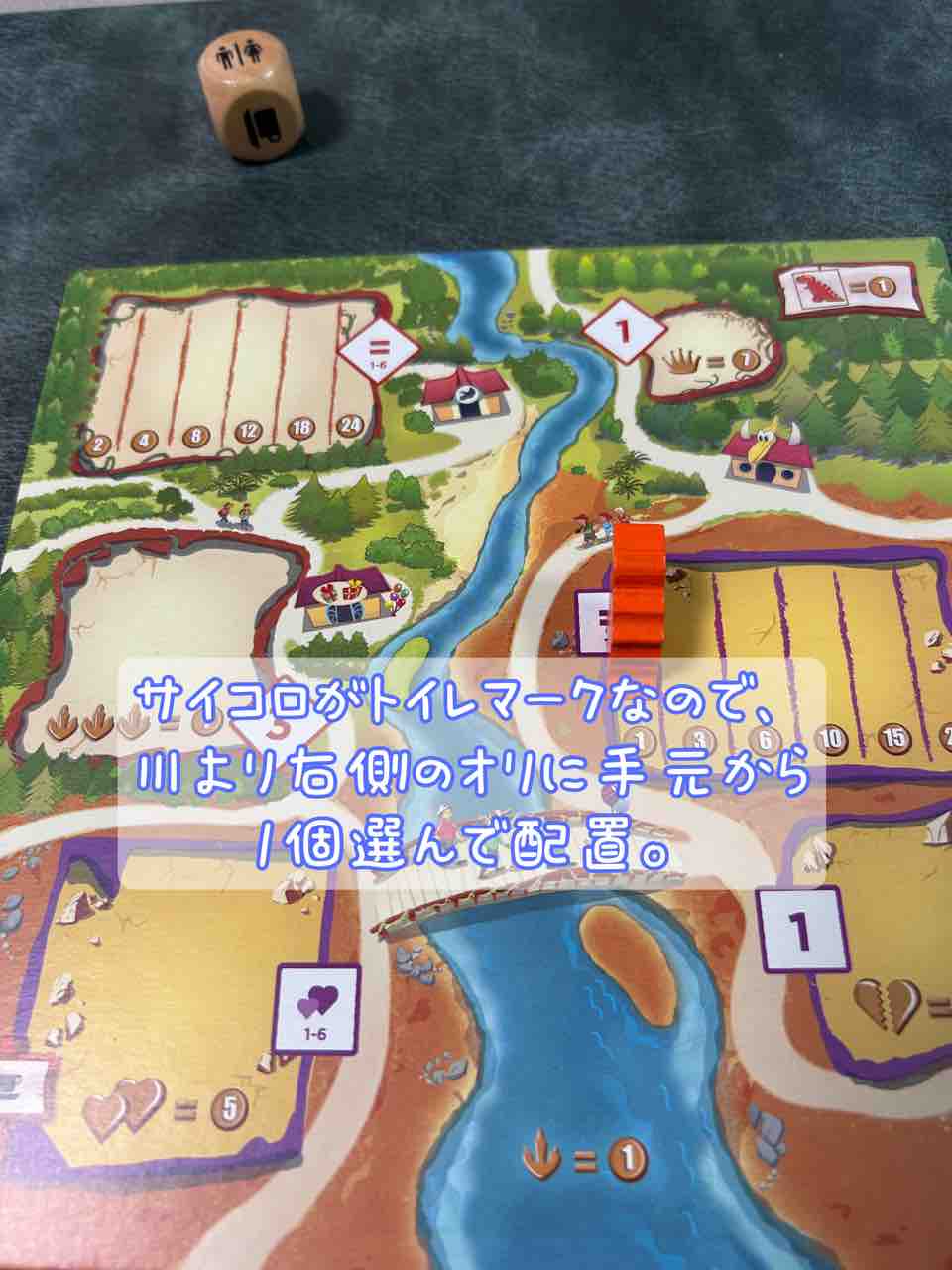お手洗い:ボード右半部のお手洗い方面(川より右側)に置かなければなりません。