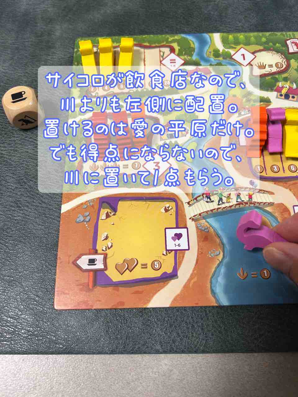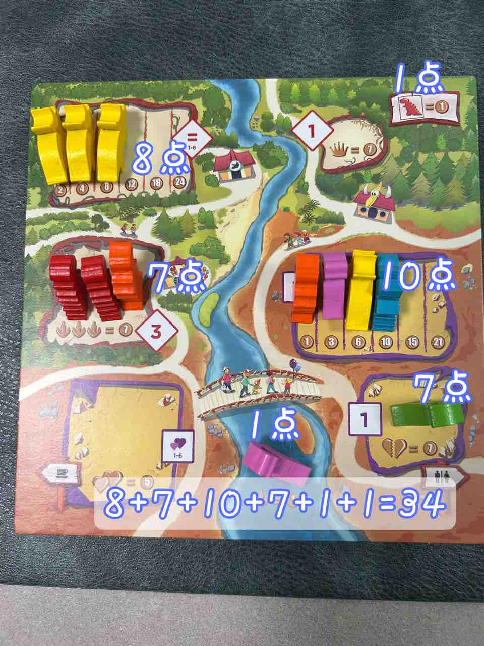置けない場合は川に配置することになるのですが、ゲーム終了時に川にいる恐竜は1点になります。